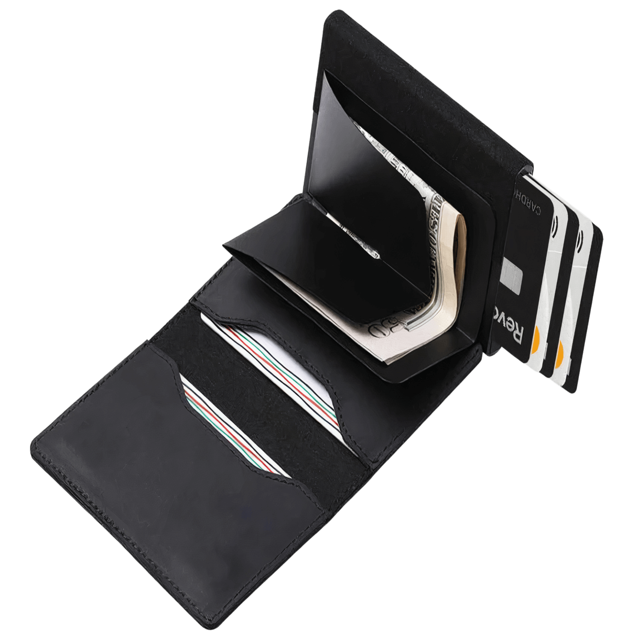 Track your wallet with Apple Find My, block RFID theft, and access your cards in one click — all in a sleek leather wallet built for modern life.